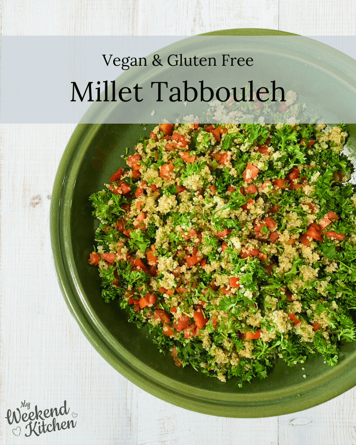 This millet tabbouleh salad is a wholesome and hearty meal in a bowl. It is easy to prep early and put together for a packed lunch or a sit-down dinner. Made with kodu millet as the grain base, it is naturally gluten-free and vegan.
